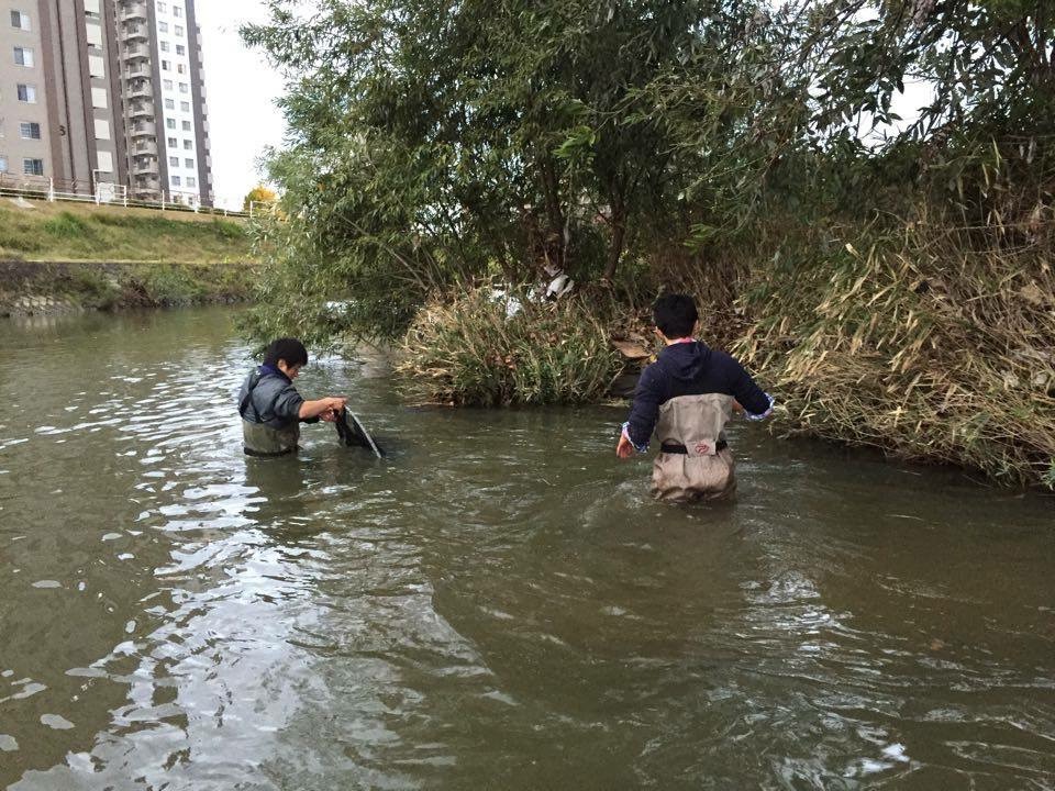 既に生き物を投入している水槽との違いが出ると面白いですよね。どちらかといえば上流域のきれいな川で採れた生き物がほとんどですから。都市河川の天白川中流域ではどんな生き物が採れるのか。一応、そういう狙いを持ってやってます。