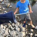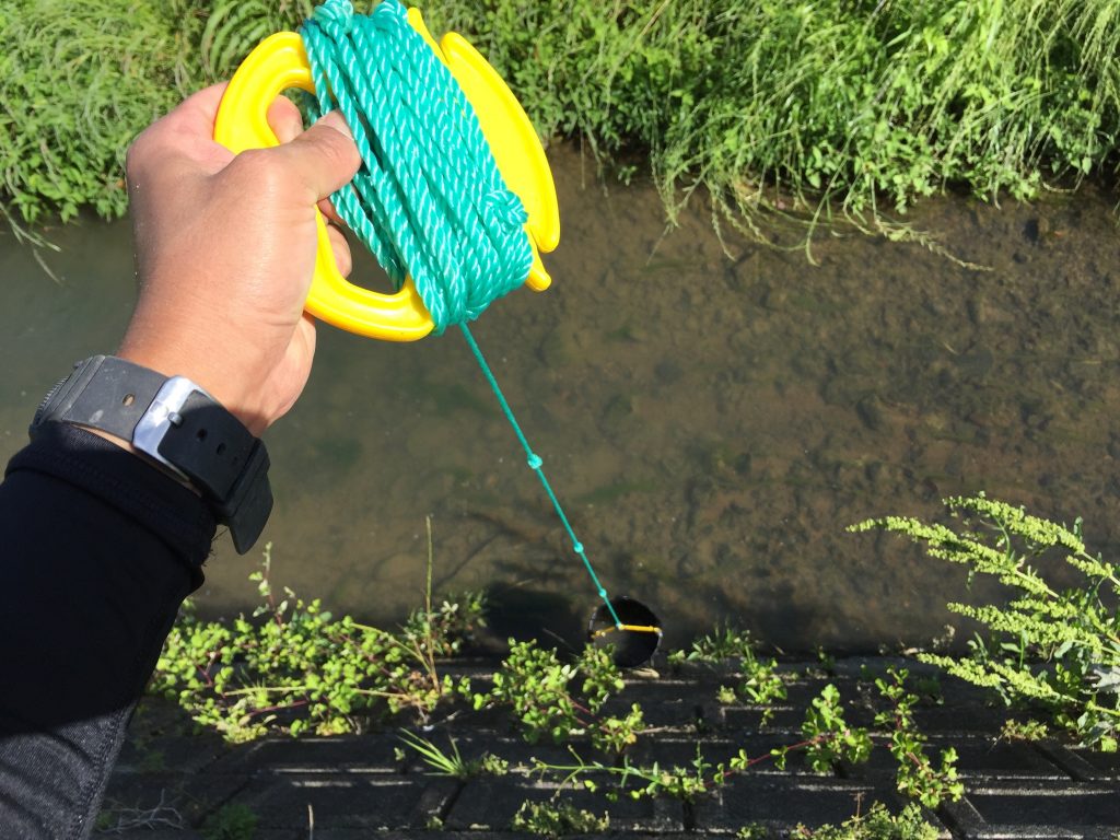 水辺まで容易にアクセスできる川なら、生き物持ち帰り用の水は川からすぐに汲み上げて来られるが、昨今の川はそうはいかない場合も多い。屹立した護岸で閉じ込められた川は、勢い余って降りたはいいが登れないということがよくある。