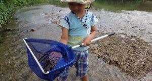 大人もハマるお魚観察。白川町の川で手作りセルビンを仕掛けてみました!