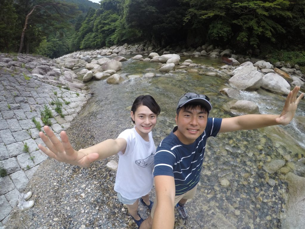 今回行ったのは滋賀県神崎川。GoPro使用経験のあるモリさんに同行していただき、インスタ映えする撮り方をレクチャーしてもらいました。モデルは編集部の小林とモリさんです。