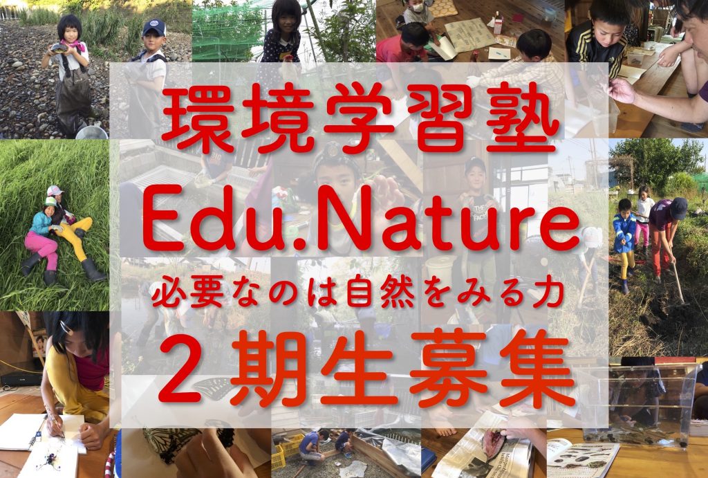 現在、来期2018年度2期生の募集を開始しています。他では得られない体験いっぱいの環境学習塾Edu.Nature。上記チラシをご参照の上、ぜひ、お気軽にお問い合わせください。既に定員残りわずかのコースも。お早めにどうぞ!