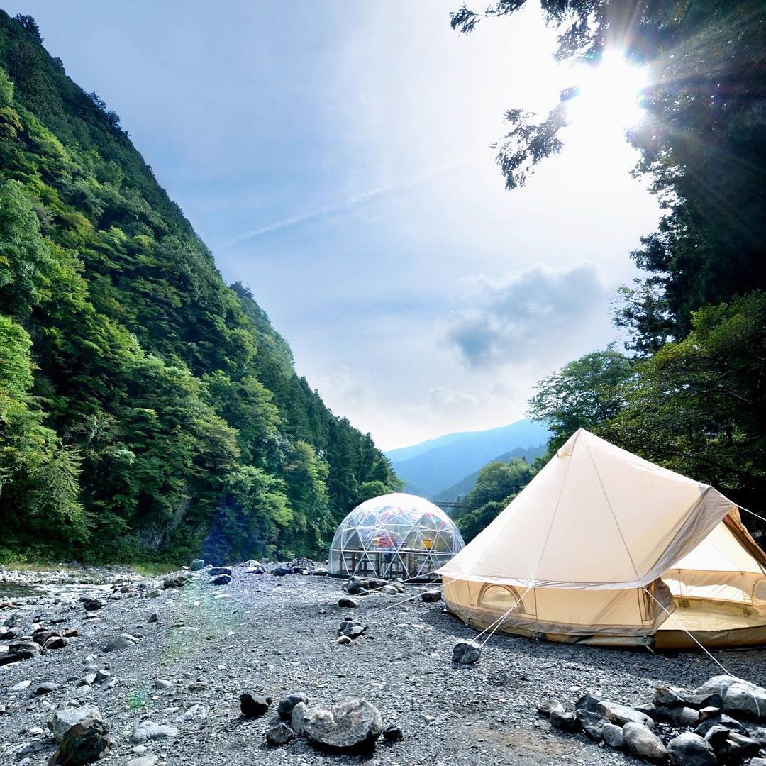 日本有数の温泉地、鬼怒川温泉街の少し北側に位置し、雄大な鬼怒川の山に囲まれた渓流沿いにあるキャンプ場です。